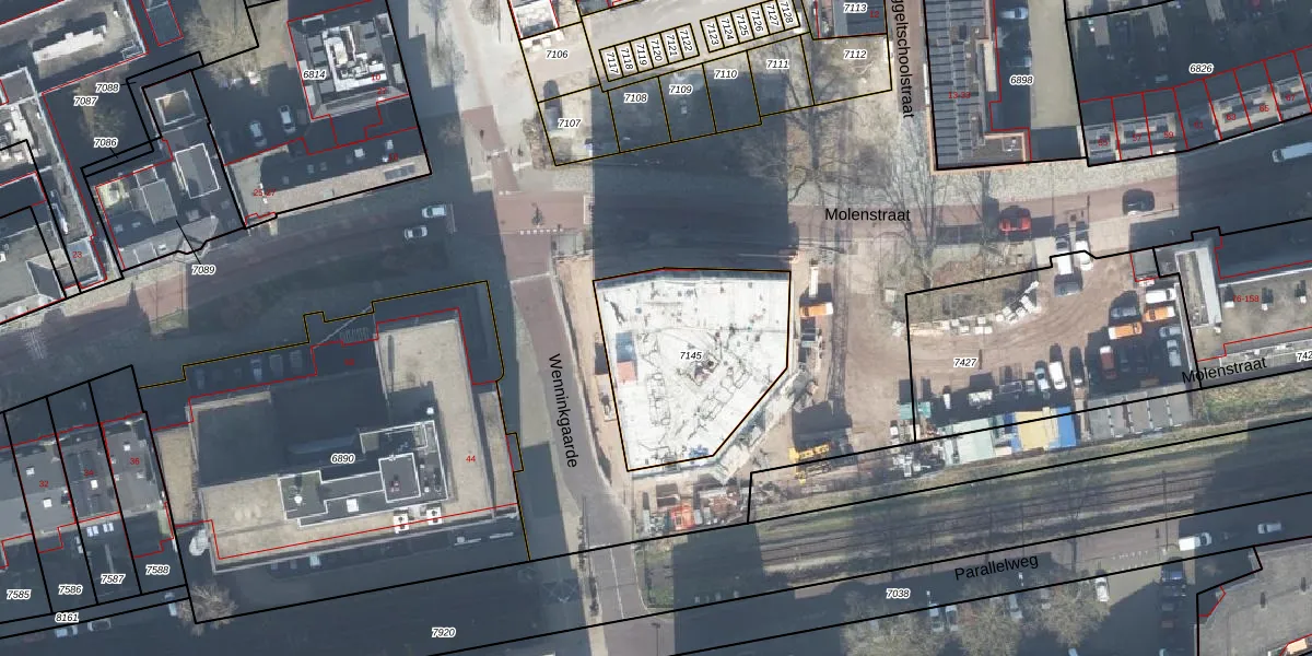 Het perceel waarop Wenninkgaarde 43-809 staat heeft een oppervlakte van 712 m². Dit is een groot perceel. De perceeloppervlakte wordt geregistreerd door het Kadaster. Gedetailleerde informatie over de maten van dit perceel kunt u vinden in het rapport Kadastrale kaart met maatvoering van Wenninkgaarde 43-809.