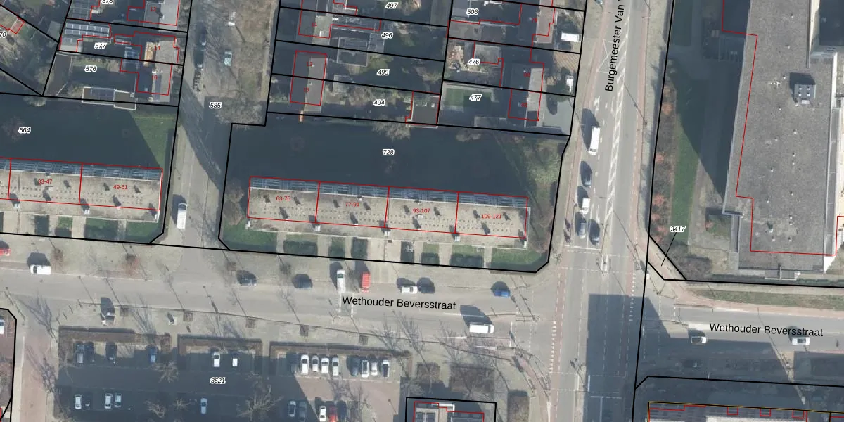 Het perceel waarop Wethouder Beversstraat 107 staat heeft een oppervlakte van 2578 m². Dit is een zeer groot perceel. De perceeloppervlakte wordt geregistreerd door het Kadaster. Gedetailleerde informatie over de maten van dit perceel kunt u vinden in het rapport Kadastrale kaart met maatvoering van Wethouder Beversstraat 107.