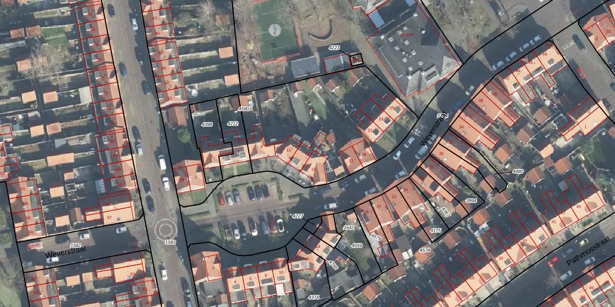 Weverstraat 13 is gelegen op kadastraal perceel ESD00G4590. Deze kadastrale aanduiding is uniek en wordt gebruikt door het Kadaster om eigendomsrechten en andere zakelijke rechten vast te leggen. Het perceel maakt onderdeel uit van de kadastrale gemeente Enschede.