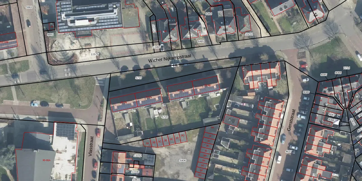 Het perceel waarop Wicher Nijkampstraat 67 staat heeft een oppervlakte van 2090 m². Dit is een zeer groot perceel. De perceeloppervlakte wordt geregistreerd door het Kadaster. Gedetailleerde informatie over de maten van dit perceel kunt u vinden in het rapport Kadastrale kaart met maatvoering van Wicher Nijkampstraat 67.