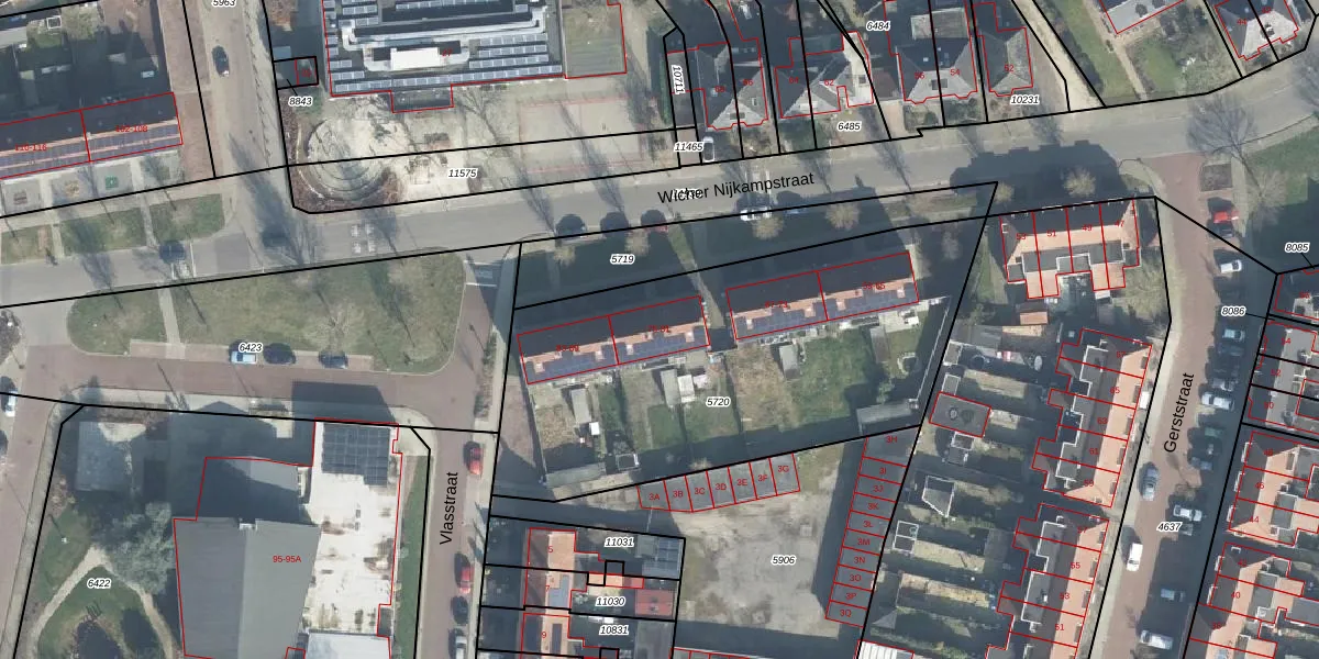 Het perceel waarop Wicher Nijkampstraat 81 staat heeft een oppervlakte van 2090 m². Dit is een zeer groot perceel. De perceeloppervlakte wordt geregistreerd door het Kadaster. Gedetailleerde informatie over de maten van dit perceel kunt u vinden in het rapport Kadastrale kaart met maatvoering van Wicher Nijkampstraat 81.