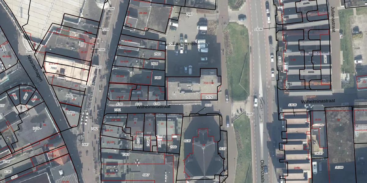 Het perceel waarop Wilhelminastraat 7-26 staat heeft een oppervlakte van 418 m². Dit is een groot perceel. De perceeloppervlakte wordt geregistreerd door het Kadaster. Gedetailleerde informatie over de maten van dit perceel kunt u vinden in het rapport Kadastrale kaart met maatvoering van Wilhelminastraat 7-26.
