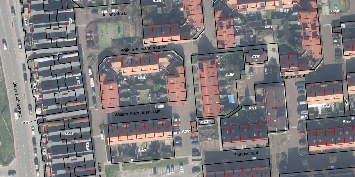 Het perceel waarop Willem-Alexanderstraat 18 staat heeft een oppervlakte van 1377 m². Dit is een zeer groot perceel. De perceeloppervlakte wordt geregistreerd door het Kadaster. Gedetailleerde informatie over de maten van dit perceel kunt u vinden in het rapport Kadastrale kaart met maatvoering van Willem-Alexanderstraat 18.