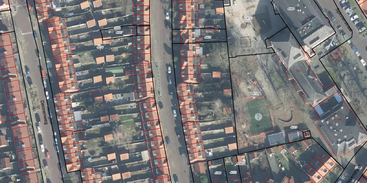 Het adres ligt op het perceel ESD00-G-4590, dat zich in de kadastrale gemeente Enschede bevindt. Het perceel is met 3771 m² relatief groot. Het gemiddelde ligt in de kadastrale gemeente Enschede op 546,33 m². De grootste perceeloppervlakte in de kadastrale gemeente is 10,7 ha. De kleinste oppervlakte bedraagt 0 m². Op het perceel zijn 23 adressen aanwezig. In de Basisregistratie Kadaster (BRK) werden de grenzen van het perceel geregistreerd op 09-12-2021.