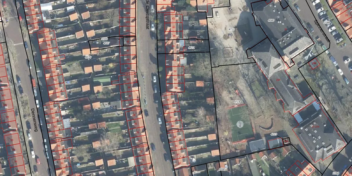 Het perceel waarop Willem de Clercqstraat 48 staat heeft een oppervlakte van 3771 m². Dit is een zeer groot perceel. De perceeloppervlakte wordt geregistreerd door het Kadaster. Gedetailleerde informatie over de maten van dit perceel kunt u vinden in het rapport Kadastrale kaart met maatvoering van Willem de Clercqstraat 48.