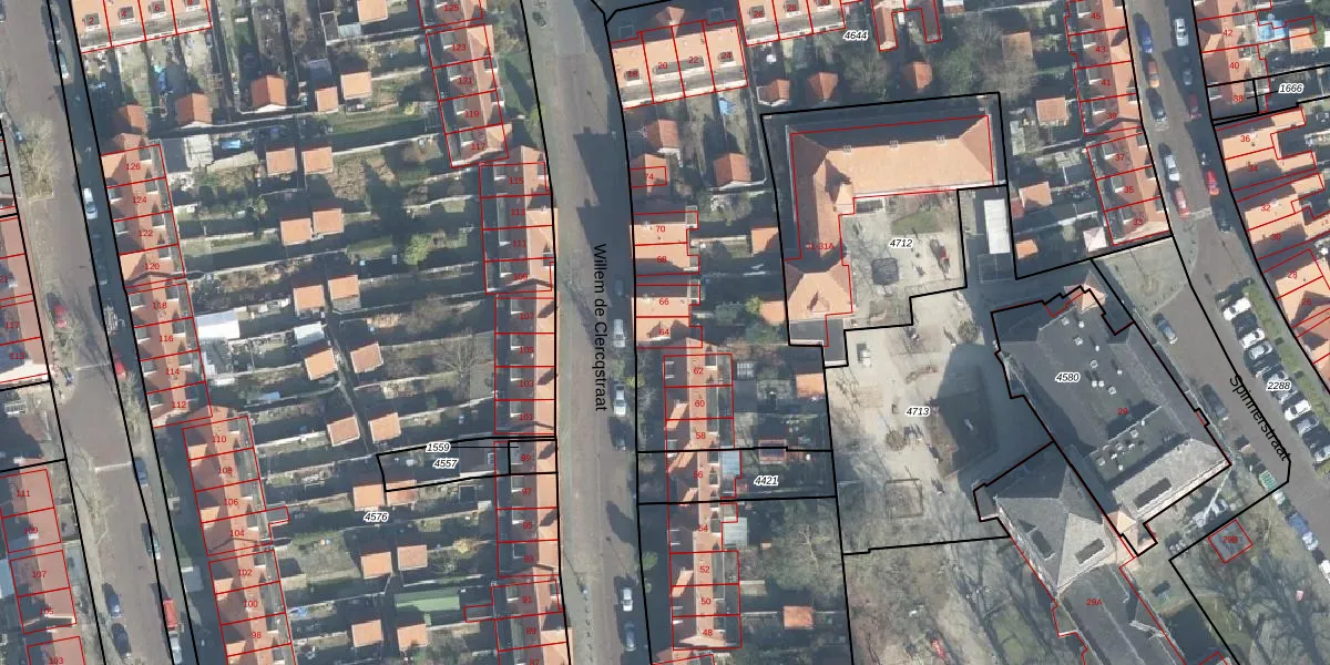 Het perceel waarop Willem de Clercqstraat 64 staat heeft een oppervlakte van 3376 m². Dit is een zeer groot perceel. De perceeloppervlakte wordt geregistreerd door het Kadaster. Gedetailleerde informatie over de maten van dit perceel kunt u vinden in het rapport Kadastrale kaart met maatvoering van Willem de Clercqstraat 64.