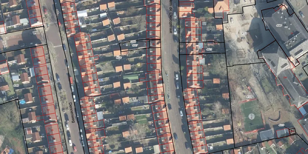 Het perceel waarop Willem de Clercqstraat 91 staat heeft een oppervlakte van 1,1 ha. Dit is een zeer groot perceel. De perceeloppervlakte wordt geregistreerd door het Kadaster. Gedetailleerde informatie over de maten van dit perceel kunt u vinden in het rapport Kadastrale kaart met maatvoering van Willem de Clercqstraat 91.