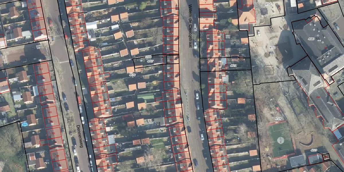 Het perceel waarop Willem de Clercqstraat 93 staat heeft een oppervlakte van 1,1 ha. Dit is een zeer groot perceel. De perceeloppervlakte wordt geregistreerd door het Kadaster. Gedetailleerde informatie over de maten van dit perceel kunt u vinden in het rapport Kadastrale kaart met maatvoering van Willem de Clercqstraat 93.
