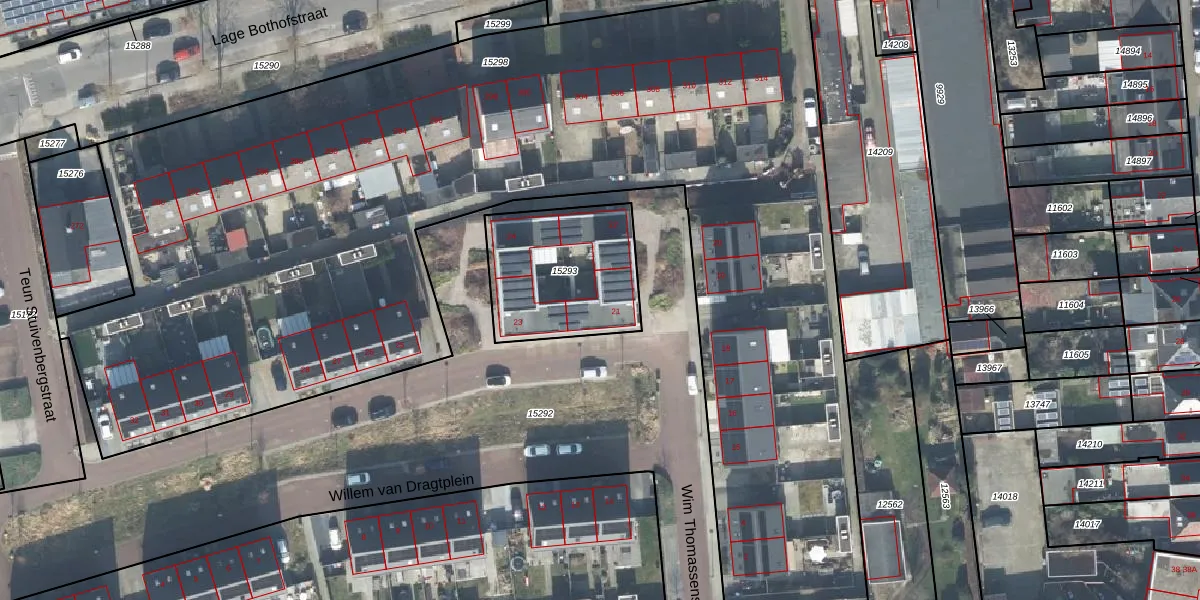 Willem van Dragtplein 21 is gelegen op kadastraal perceel ESD00D15293. Deze kadastrale aanduiding is uniek en wordt gebruikt door het Kadaster om eigendomsrechten en andere zakelijke rechten vast te leggen. Het perceel maakt onderdeel uit van de kadastrale gemeente Enschede.
