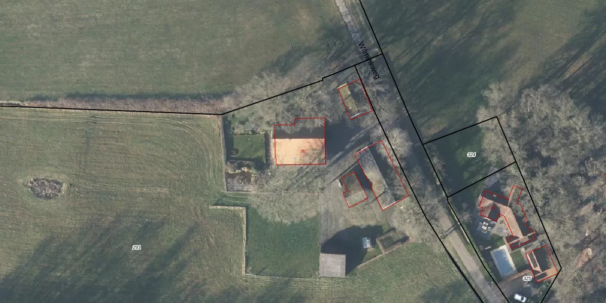 Het perceel waarop Wilminkweg 25 staat heeft een oppervlakte van 1,8 ha. Dit is een zeer groot perceel. De perceeloppervlakte wordt geregistreerd door het Kadaster. Gedetailleerde informatie over de maten van dit perceel kunt u vinden in het rapport Kadastrale kaart met maatvoering van Wilminkweg 25.