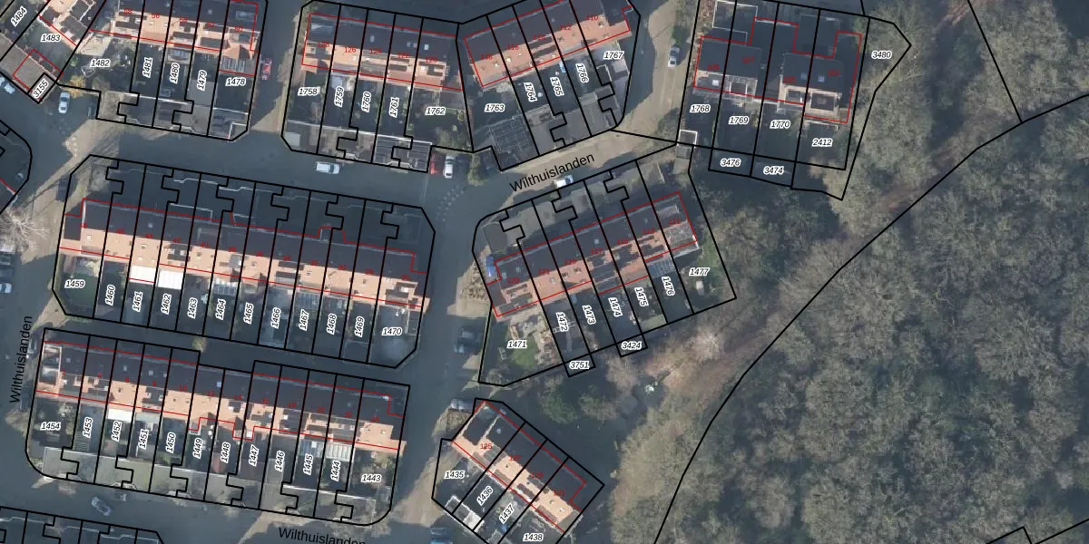 Het perceel waarop Wilthuislanden 121 staat heeft een oppervlakte van 155 m². Dit is een middelgroot perceel. De perceeloppervlakte wordt geregistreerd door het Kadaster. Gedetailleerde informatie over de maten van dit perceel kunt u vinden in het rapport Kadastrale kaart met maatvoering van Wilthuislanden 121.