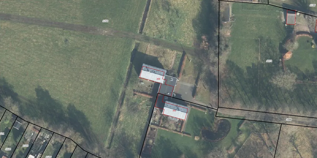 Het perceel waarop Windmolenweg 203 staat heeft een oppervlakte van 2,1 ha. Dit is een zeer groot perceel. De perceeloppervlakte wordt geregistreerd door het Kadaster. Gedetailleerde informatie over de maten van dit perceel kunt u vinden in het rapport Kadastrale kaart met maatvoering van Windmolenweg 203.