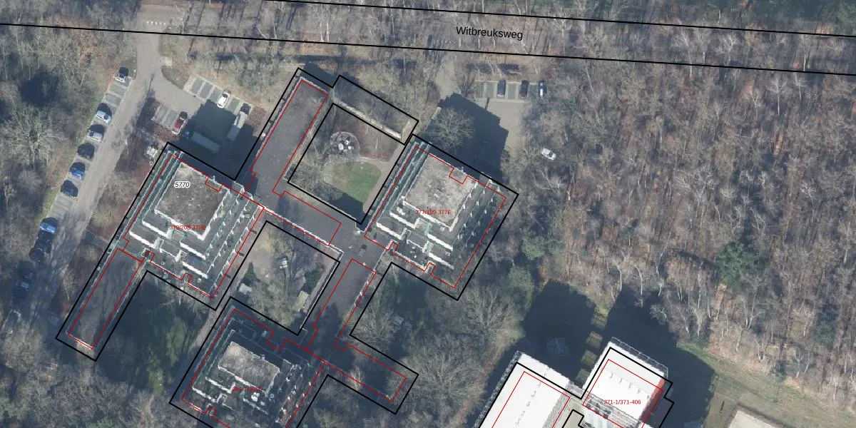 Het perceel waarop Witbreuksweg 377-E staat heeft een oppervlakte van 3861 m². Dit is een zeer groot perceel. De perceeloppervlakte wordt geregistreerd door het Kadaster. Gedetailleerde informatie over de maten van dit perceel kunt u vinden in het rapport Kadastrale kaart met maatvoering van Witbreuksweg 377-E.