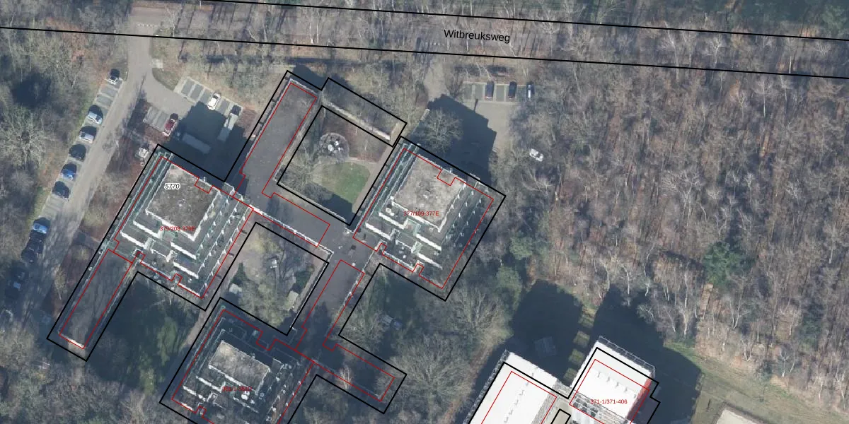 Het perceel waarop Witbreuksweg 377-A staat heeft een oppervlakte van 3861 m². Dit is een zeer groot perceel. De perceeloppervlakte wordt geregistreerd door het Kadaster. Gedetailleerde informatie over de maten van dit perceel kunt u vinden in het rapport Kadastrale kaart met maatvoering van Witbreuksweg 377-A.