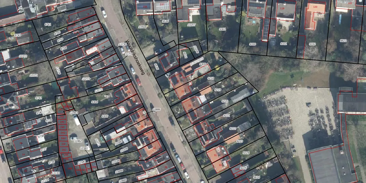 Wooldrikshoekweg 21 is gelegen op kadastraal perceel LNK00O9218. Deze kadastrale aanduiding is uniek en wordt gebruikt door het Kadaster om eigendomsrechten en andere zakelijke rechten vast te leggen. Het perceel maakt onderdeel uit van de kadastrale gemeente Lonneker.