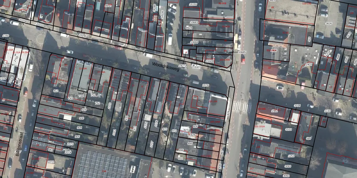 Gebruik de zoekbalk of klik op een perceel voor informatie over de adressen binnen dit perceel.