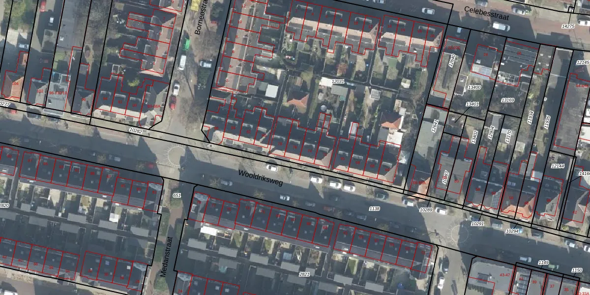 Het perceel waarop Wooldriksweg 76 staat heeft een oppervlakte van 4124 m². Dit is een zeer groot perceel. De perceeloppervlakte wordt geregistreerd door het Kadaster. Gedetailleerde informatie over de maten van dit perceel kunt u vinden in het rapport Kadastrale kaart met maatvoering van Wooldriksweg 76.
