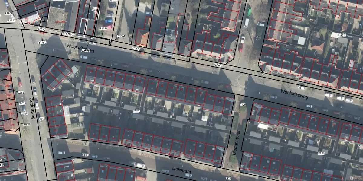 Het perceel waarop Wooldriksweg 91 staat heeft een oppervlakte van 4319 m². Dit is een zeer groot perceel. De perceeloppervlakte wordt geregistreerd door het Kadaster. Gedetailleerde informatie over de maten van dit perceel kunt u vinden in het rapport Kadastrale kaart met maatvoering van Wooldriksweg 91.