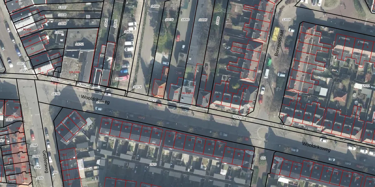 Het perceel waarop Wooldriksweg 98 staat heeft een oppervlakte van 561 m². Dit is een groot perceel. De perceeloppervlakte wordt geregistreerd door het Kadaster. Gedetailleerde informatie over de maten van dit perceel kunt u vinden in het rapport Kadastrale kaart met maatvoering van Wooldriksweg 98.