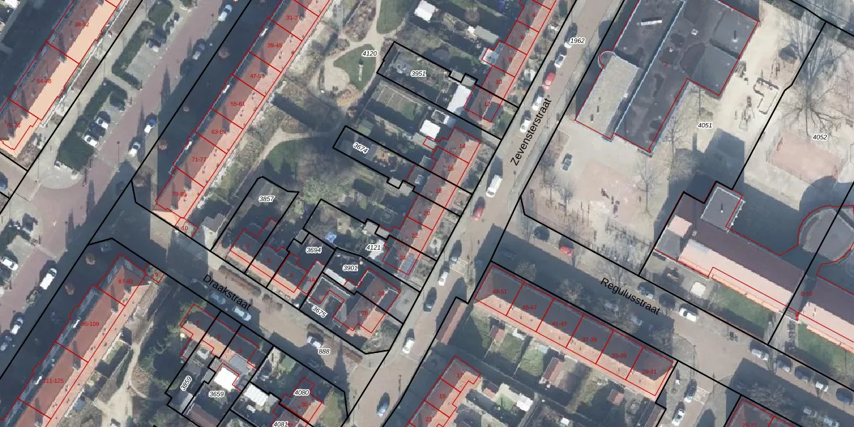 Het perceel waarop Zevensterstraat 20 staat heeft een oppervlakte van 5623 m². Dit is een zeer groot perceel. De perceeloppervlakte wordt geregistreerd door het Kadaster. Gedetailleerde informatie over de maten van dit perceel kunt u vinden in het rapport Kadastrale kaart met maatvoering van Zevensterstraat 20.