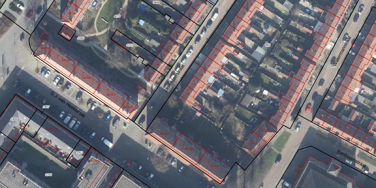 Het perceel waarop Zevensterstraat 43 staat heeft een oppervlakte van 7990 m². Dit is een zeer groot perceel. De perceeloppervlakte wordt geregistreerd door het Kadaster. Gedetailleerde informatie over de maten van dit perceel kunt u vinden in het rapport Kadastrale kaart met maatvoering van Zevensterstraat 43.