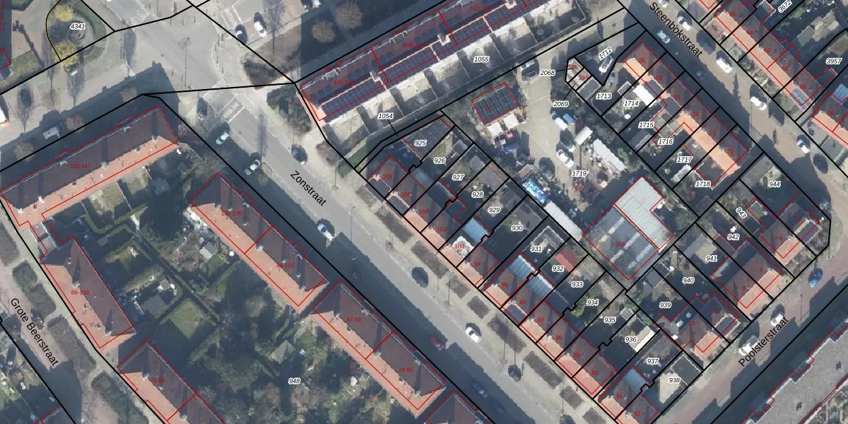 Het perceel waarop Zonstraat 104 staat heeft een oppervlakte van 141 m². Dit is een middelgroot perceel. De perceeloppervlakte wordt geregistreerd door het Kadaster. Gedetailleerde informatie over de maten van dit perceel kunt u vinden in het rapport Kadastrale kaart met maatvoering van Zonstraat 104.
