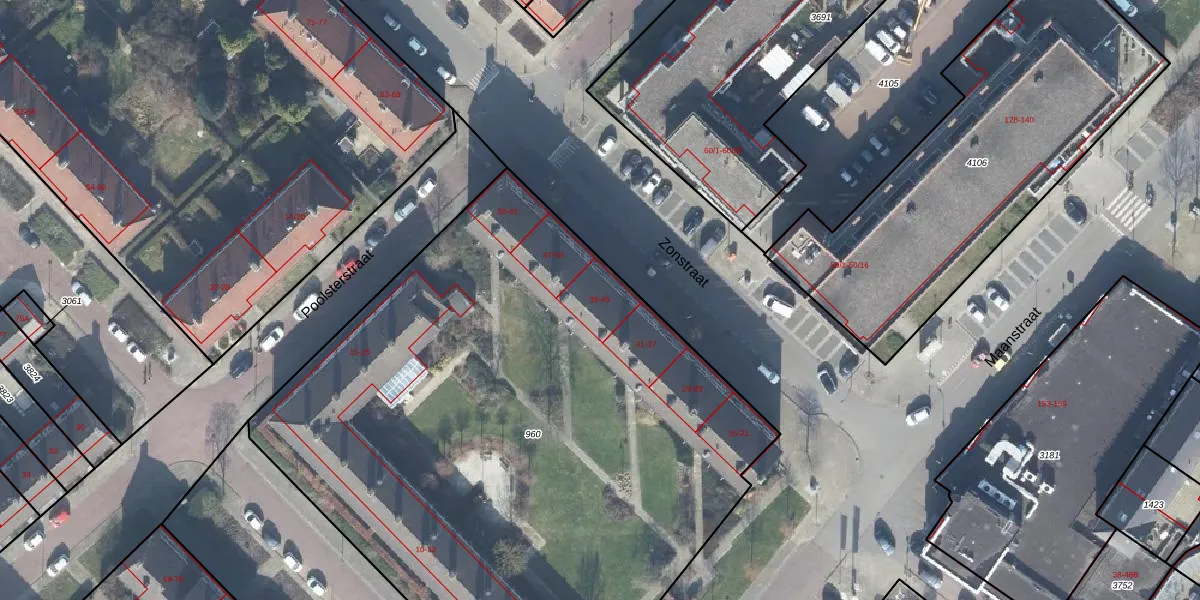Het perceel waarop Zonstraat 39 staat heeft een oppervlakte van 4375 m². Dit is een zeer groot perceel. De perceeloppervlakte wordt geregistreerd door het Kadaster. Gedetailleerde informatie over de maten van dit perceel kunt u vinden in het rapport Kadastrale kaart met maatvoering van Zonstraat 39.