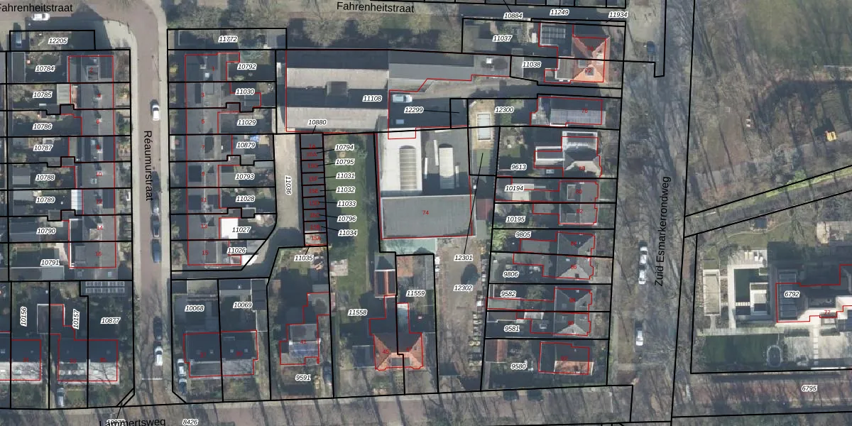 Zuid Esmarkerrondweg 74 is gelegen op kadastraal perceel LNK00O12302. Deze kadastrale aanduiding is uniek en wordt gebruikt door het Kadaster om eigendomsrechten en andere zakelijke rechten vast te leggen. Het perceel maakt onderdeel uit van de kadastrale gemeente Lonneker.