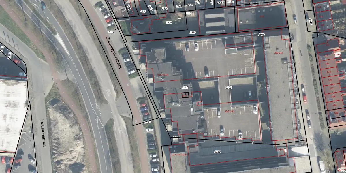 Het perceel waarop Zuiderspoorstraat 11-23 staat heeft een oppervlakte van 5353 m². Dit is een zeer groot perceel. De perceeloppervlakte wordt geregistreerd door het Kadaster. Gedetailleerde informatie over de maten van dit perceel kunt u vinden in het rapport Kadastrale kaart met maatvoering van Zuiderspoorstraat 11-23.