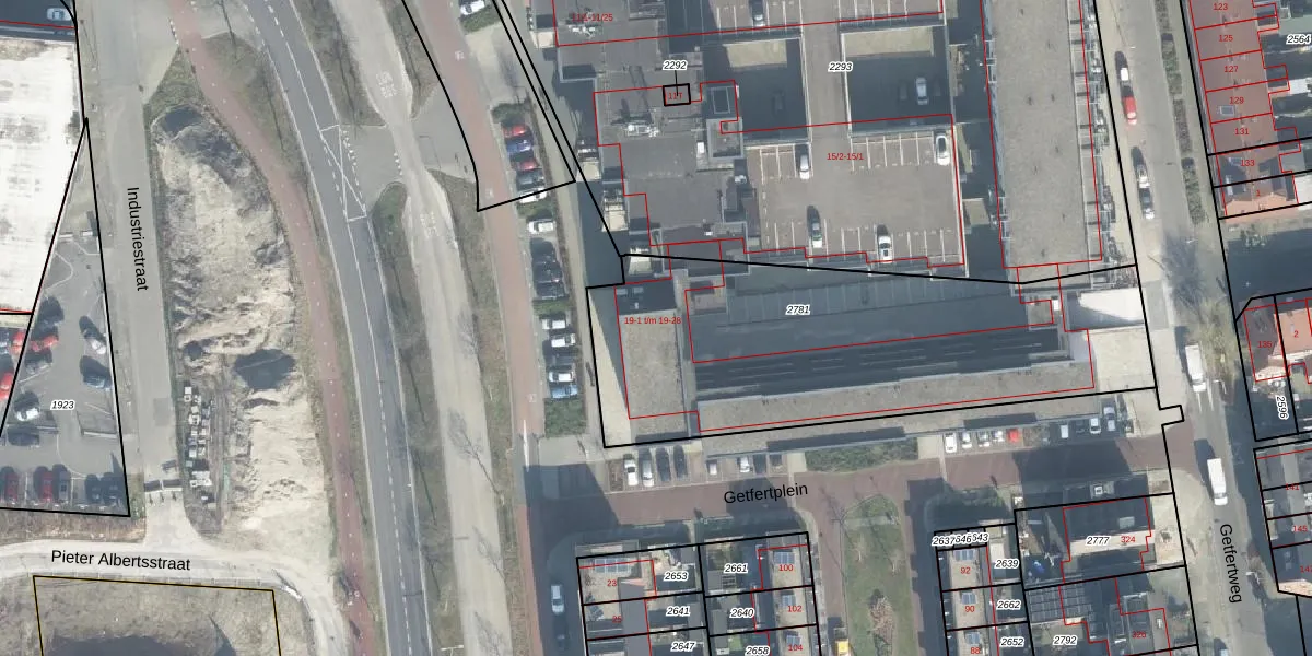 Het perceel waarop Zuiderspoorstraat 19-21 staat heeft een oppervlakte van 1895 m². Dit is een zeer groot perceel. De perceeloppervlakte wordt geregistreerd door het Kadaster. Gedetailleerde informatie over de maten van dit perceel kunt u vinden in het rapport Kadastrale kaart met maatvoering van Zuiderspoorstraat 19-21.
