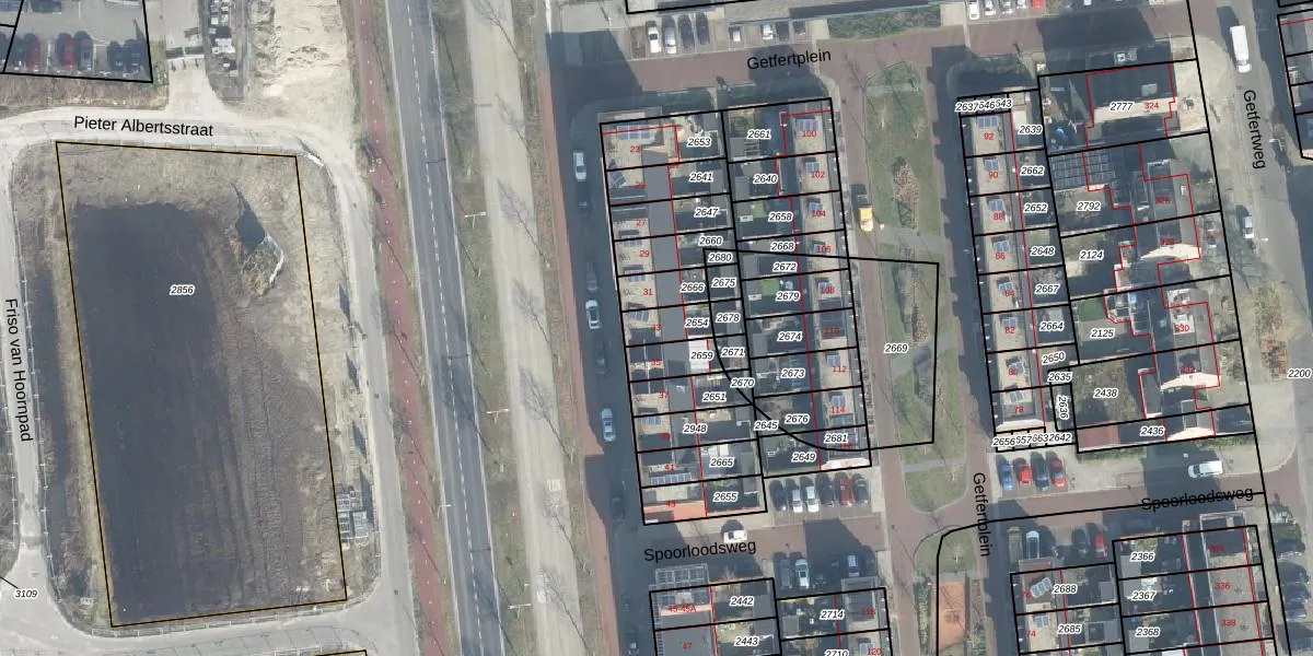 Gebruik de zoekbalk of klik op een perceel voor informatie over de adressen binnen dit perceel.