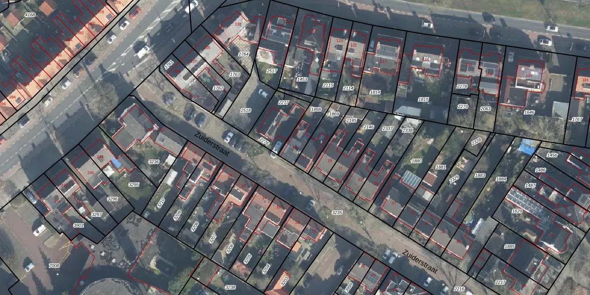 Gebruik de zoekbalk of klik op een perceel voor informatie over de adressen binnen dit perceel.