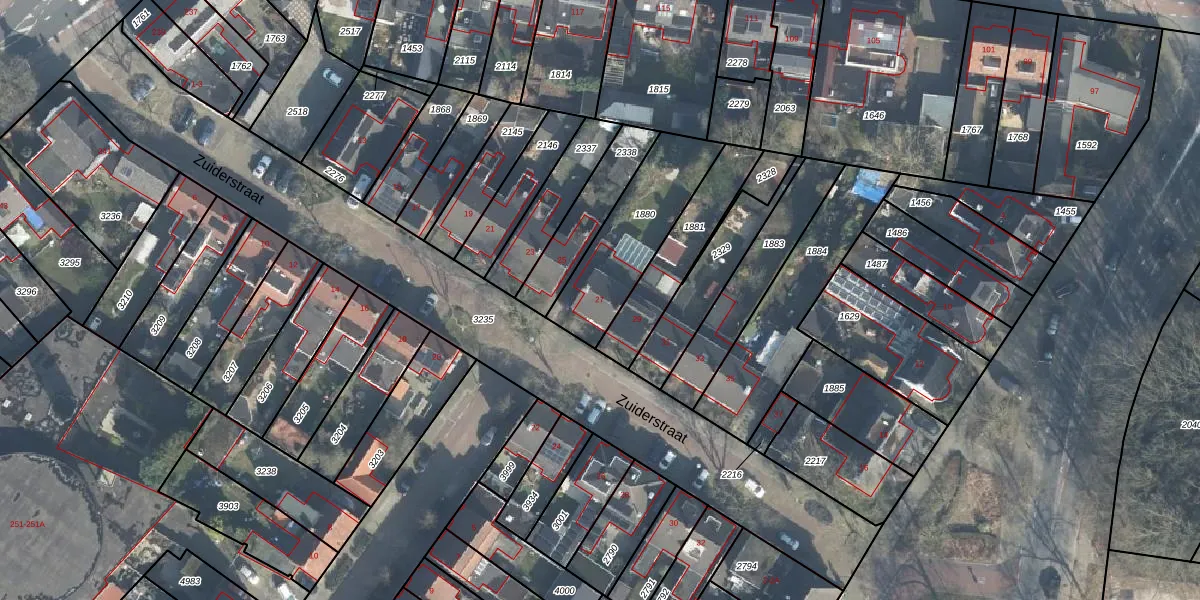 Het perceel waarop Zuiderstraat 27 staat heeft een oppervlakte van 386 m². Dit is een groot perceel. De perceeloppervlakte wordt geregistreerd door het Kadaster. Gedetailleerde informatie over de maten van dit perceel kunt u vinden in het rapport Kadastrale kaart met maatvoering van Zuiderstraat 27.