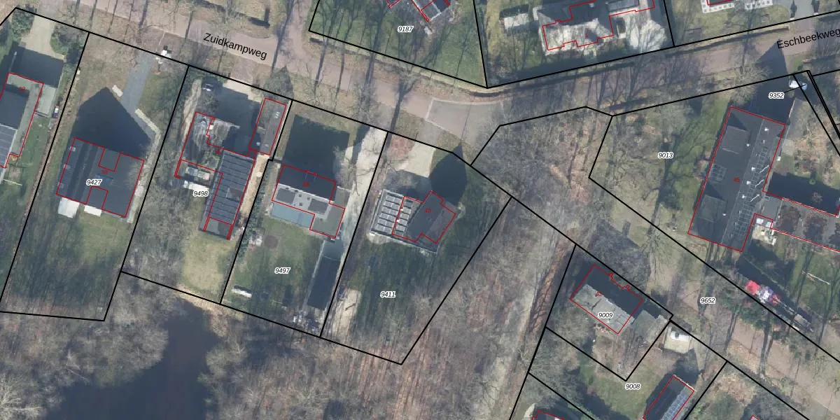 Gebruik de zoekbalk of klik op een perceel voor informatie over de adressen binnen dit perceel.