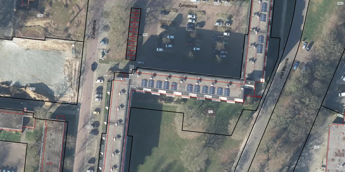 Het perceel waarop Zunabrink 11 staat heeft een oppervlakte van 3960 m². Dit is een zeer groot perceel. De perceeloppervlakte wordt geregistreerd door het Kadaster. Gedetailleerde informatie over de maten van dit perceel kunt u vinden in het rapport Kadastrale kaart met maatvoering van Zunabrink 11.