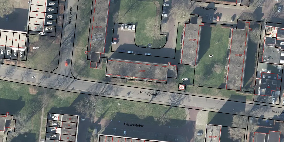 Het perceel waarop Zunabrink 150 staat heeft een oppervlakte van 5150 m². Dit is een zeer groot perceel. De perceeloppervlakte wordt geregistreerd door het Kadaster. Gedetailleerde informatie over de maten van dit perceel kunt u vinden in het rapport Kadastrale kaart met maatvoering van Zunabrink 150.