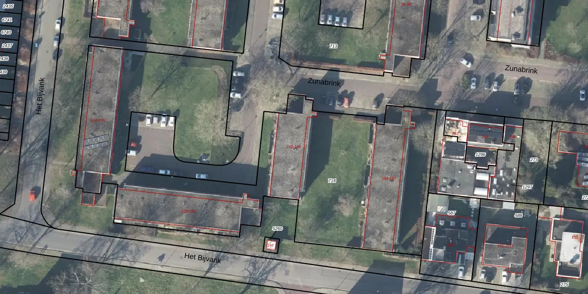 Zunabrink 152 is gelegen op kadastraal perceel LNK00Z714. Deze kadastrale aanduiding is uniek en wordt gebruikt door het Kadaster om eigendomsrechten en andere zakelijke rechten vast te leggen. Het perceel maakt onderdeel uit van de kadastrale gemeente Lonneker.