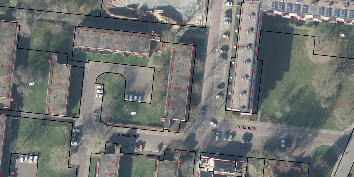 Zunabrink 16 is gelegen op kadastraal perceel LNK00Z713. Deze kadastrale aanduiding is uniek en wordt gebruikt door het Kadaster om eigendomsrechten en andere zakelijke rechten vast te leggen. Het perceel maakt onderdeel uit van de kadastrale gemeente Lonneker.