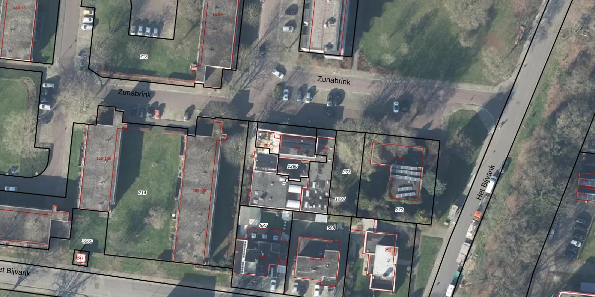 Het perceel waarop Zunabrink 204 staat heeft een oppervlakte van 284 m². Dit is een middelgroot perceel. De perceeloppervlakte wordt geregistreerd door het Kadaster. Gedetailleerde informatie over de maten van dit perceel kunt u vinden in het rapport Kadastrale kaart met maatvoering van Zunabrink 204.