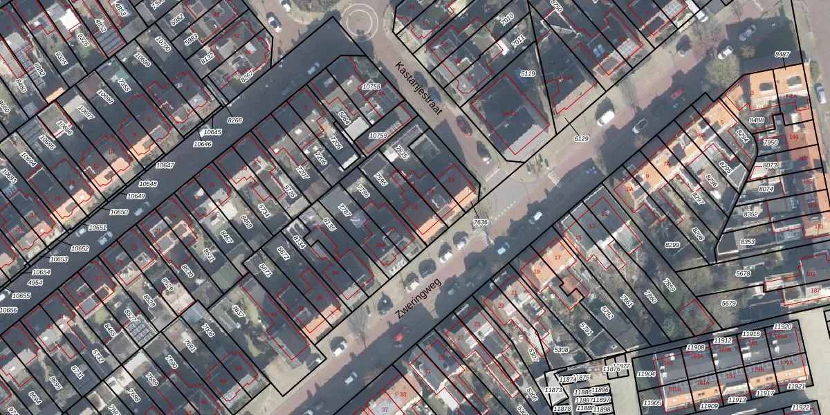 Gebruik de zoekbalk of klik op een perceel voor informatie over de adressen binnen dit perceel.