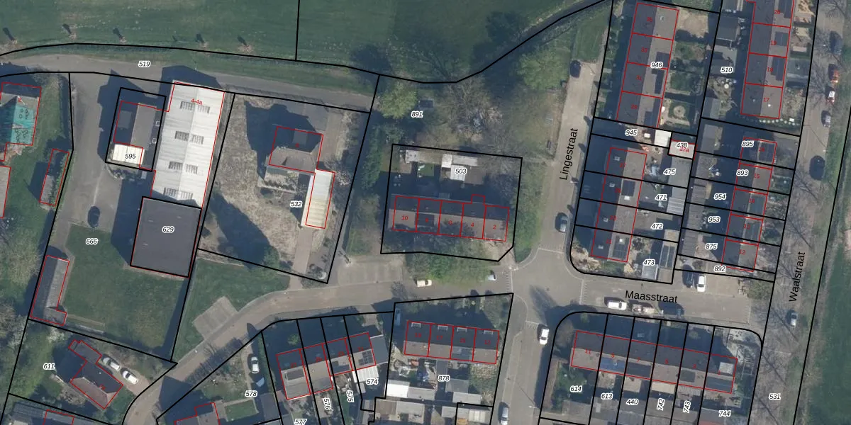 Maasstraat 8 is gelegen op kadastraal perceel DEI00M503. Deze kadastrale aanduiding is uniek en wordt gebruikt door het Kadaster om eigendomsrechten en andere zakelijke rechten vast te leggen. Het perceel maakt onderdeel uit van de kadastrale gemeente Deil.
