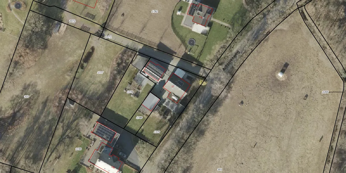 Achteresweg 17 is gelegen op kadastraal perceel WDN02Z1779. Deze kadastrale aanduiding is uniek en wordt gebruikt door het Kadaster om eigendomsrechten en andere zakelijke rechten vast te leggen. Het perceel maakt onderdeel uit van de kadastrale gemeente Wierden.