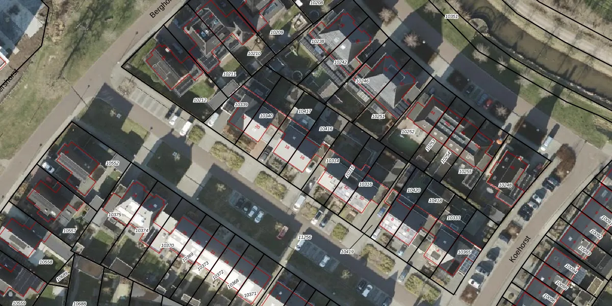 Het perceel waarop Berghorst 16 staat heeft een oppervlakte van 240 m². Dit is een middelgroot perceel. De perceeloppervlakte wordt geregistreerd door het Kadaster. Gedetailleerde informatie over de maten van dit perceel kunt u vinden in het rapport Kadastrale kaart met maatvoering van Berghorst 16.
