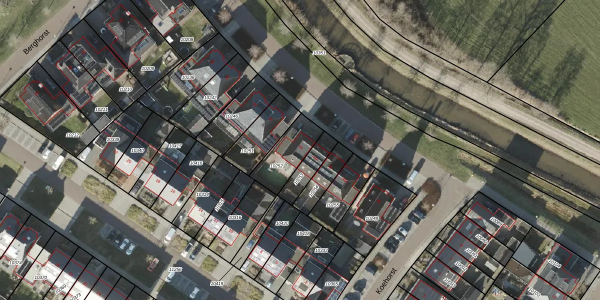 Het perceel waarop Berghorst 44 staat heeft een oppervlakte van 284 m². Dit is een middelgroot perceel. De perceeloppervlakte wordt geregistreerd door het Kadaster. Gedetailleerde informatie over de maten van dit perceel kunt u vinden in het rapport Kadastrale kaart met maatvoering van Berghorst 44.