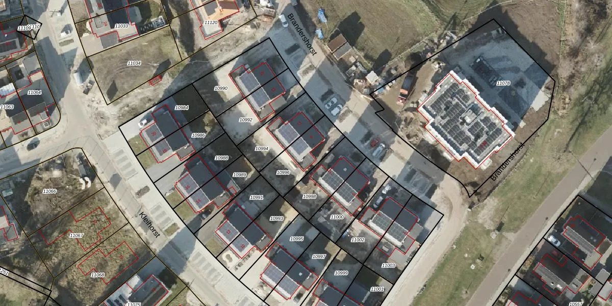 Het perceel waarop Brandershorst 9 staat heeft een oppervlakte van 300 m². Dit is een groot perceel. De perceeloppervlakte wordt geregistreerd door het Kadaster. Gedetailleerde informatie over de maten van dit perceel kunt u vinden in het rapport Kadastrale kaart met maatvoering van Brandershorst 9.