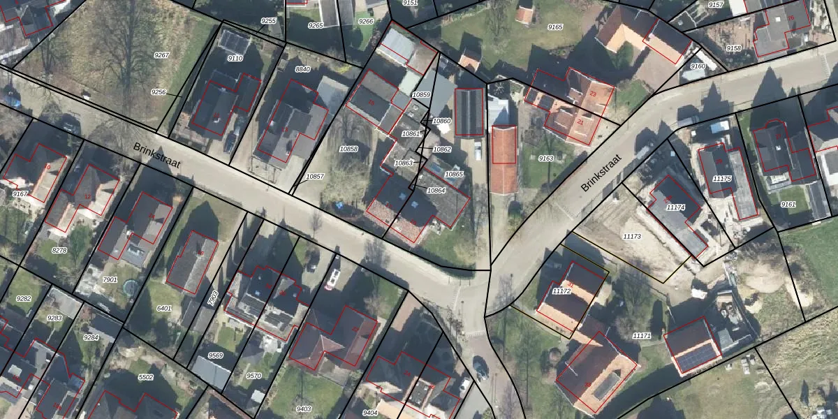 Brinkstraat 19 is gelegen op kadastraal perceel WDN02E10865. Deze kadastrale aanduiding is uniek en wordt gebruikt door het Kadaster om eigendomsrechten en andere zakelijke rechten vast te leggen. Het perceel maakt onderdeel uit van de kadastrale gemeente Wierden.