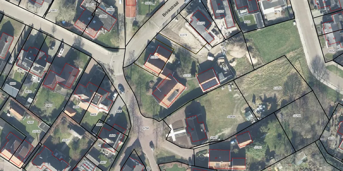 Brinkstraat 33 is gelegen op kadastraal perceel WDN02E11171. Deze kadastrale aanduiding is uniek en wordt gebruikt door het Kadaster om eigendomsrechten en andere zakelijke rechten vast te leggen. Het perceel maakt onderdeel uit van de kadastrale gemeente Wierden.