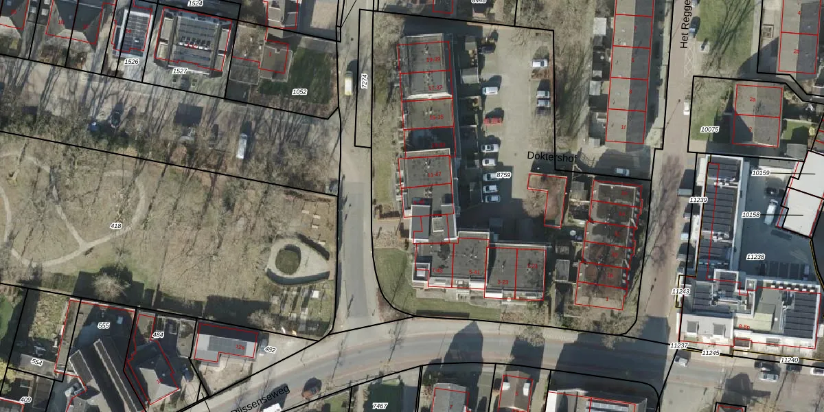 Het perceel waarop Doktershof 45 staat heeft een oppervlakte van 3991 m². Dit is een zeer groot perceel. De perceeloppervlakte wordt geregistreerd door het Kadaster. Gedetailleerde informatie over de maten van dit perceel kunt u vinden in het rapport Kadastrale kaart met maatvoering van Doktershof 45.