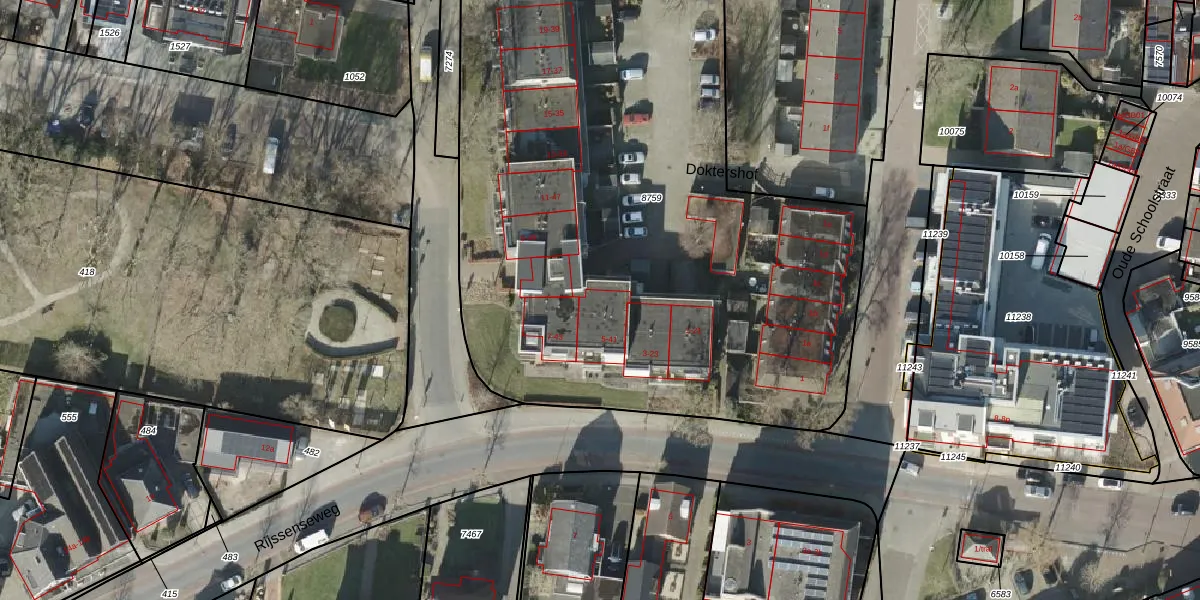 Het perceel waarop Doktershof 5 staat heeft een oppervlakte van 3991 m². Dit is een zeer groot perceel. De perceeloppervlakte wordt geregistreerd door het Kadaster. Gedetailleerde informatie over de maten van dit perceel kunt u vinden in het rapport Kadastrale kaart met maatvoering van Doktershof 5.