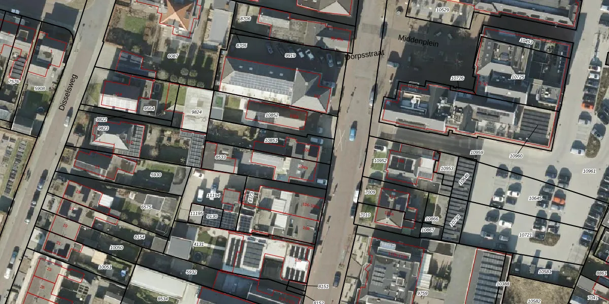 Het perceel waarop Dorpsstraat 104 staat heeft een oppervlakte van 320 m². Dit is een groot perceel. De perceeloppervlakte wordt geregistreerd door het Kadaster. Gedetailleerde informatie over de maten van dit perceel kunt u vinden in het rapport Kadastrale kaart met maatvoering van Dorpsstraat 104.